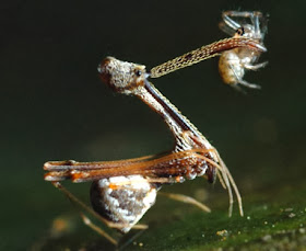 Jangan khawatir, laba-laba ini panjangnya hanya 2 mm dan meskipun dengan nama dan penampakan yang menakutkan, namun ia sama sekali tidak berbahaya bagi manusia. “Lehernya” yang panjang didesain khusus untuk mendukung berat rahangnya yang besar, yang dilengkapi dengan gigi berbisa.